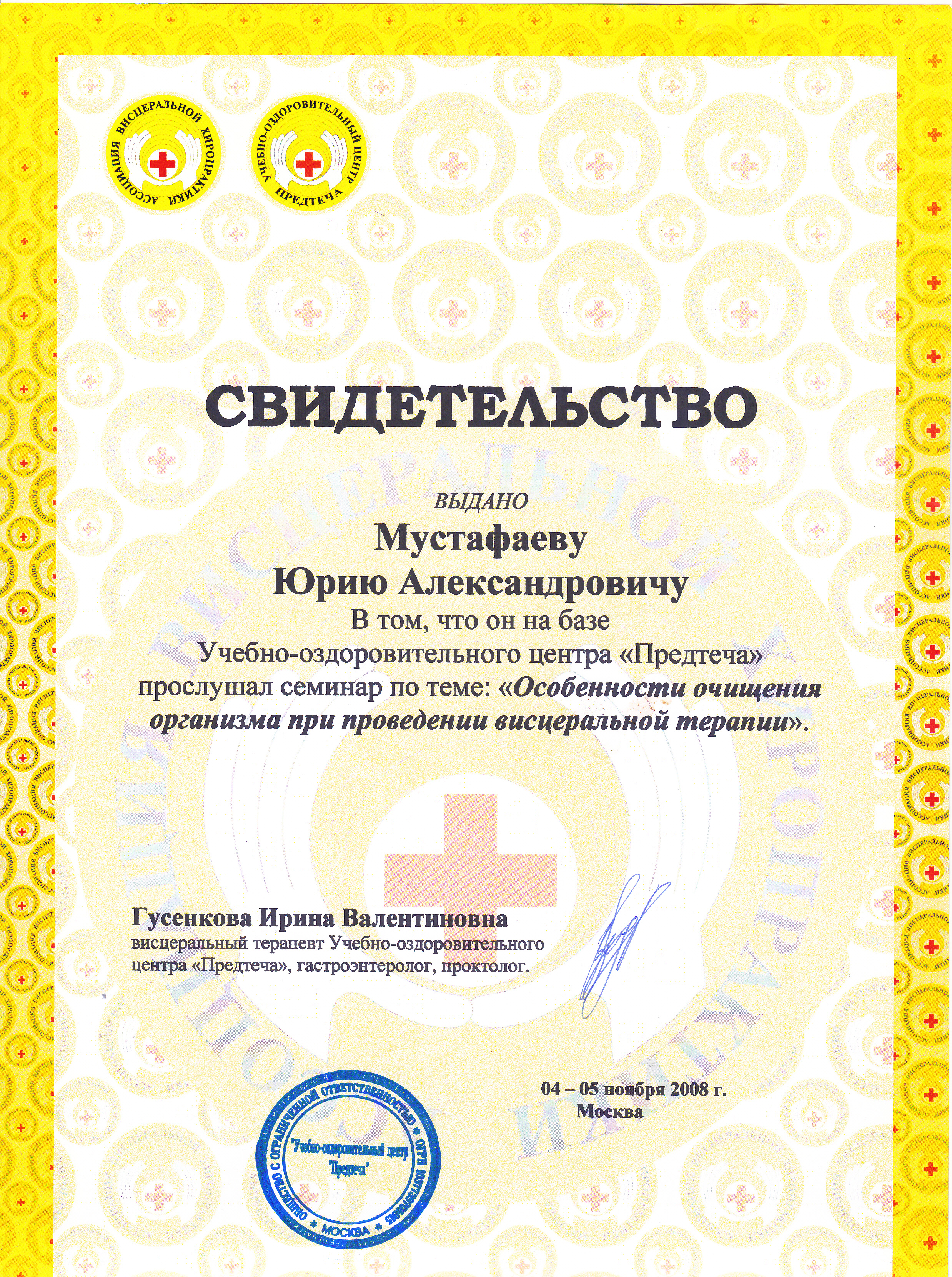 - Восстановительная медицина, сертификат