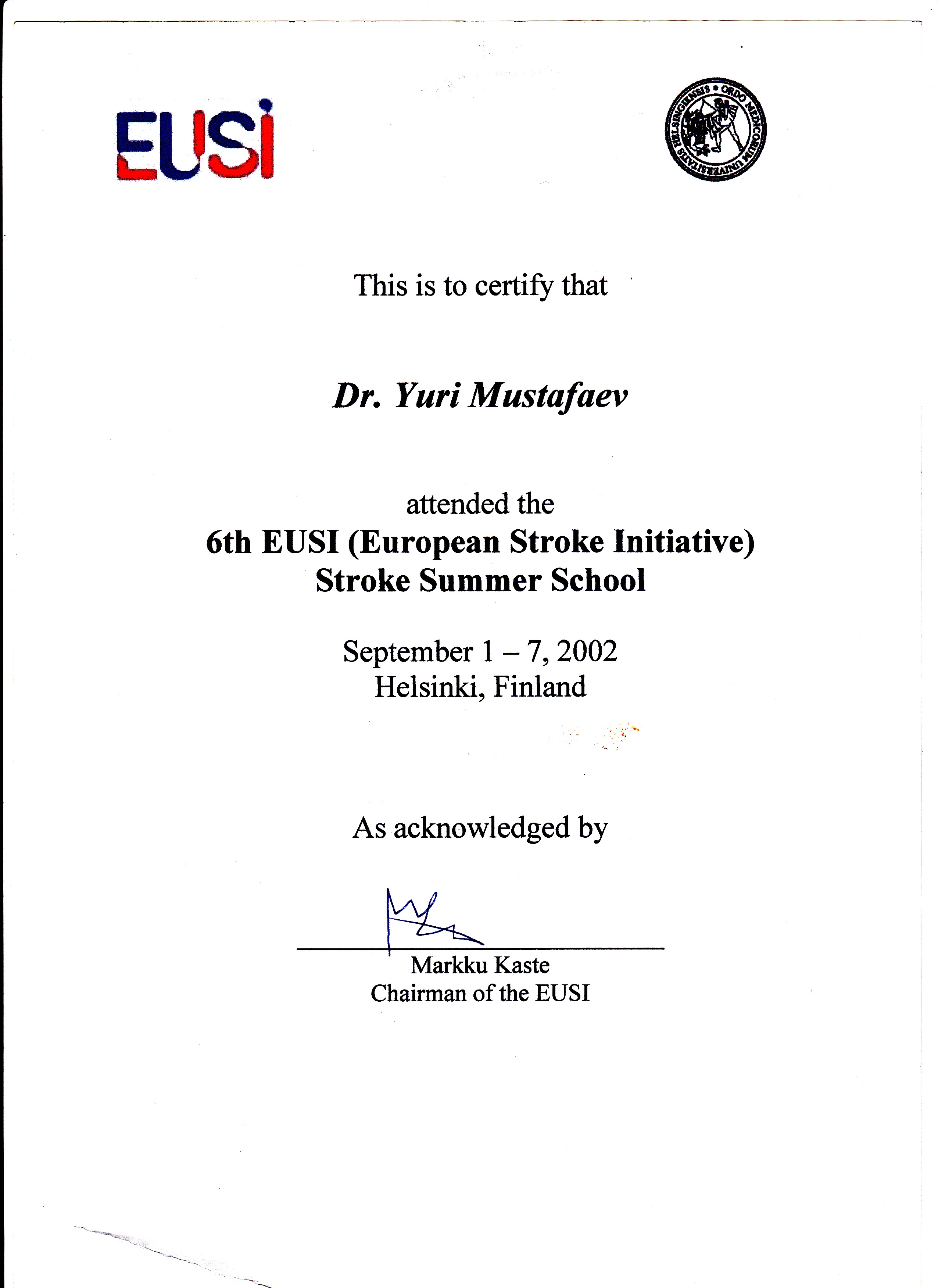 - Летняя Школа Инсульта (Финляндия)