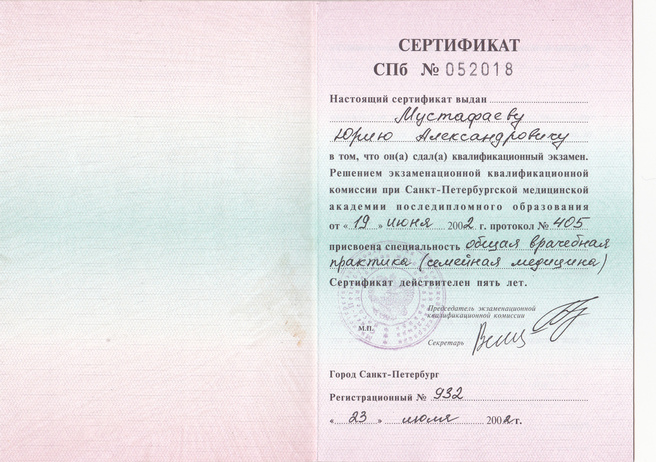 - Сертификат по семейной медицине