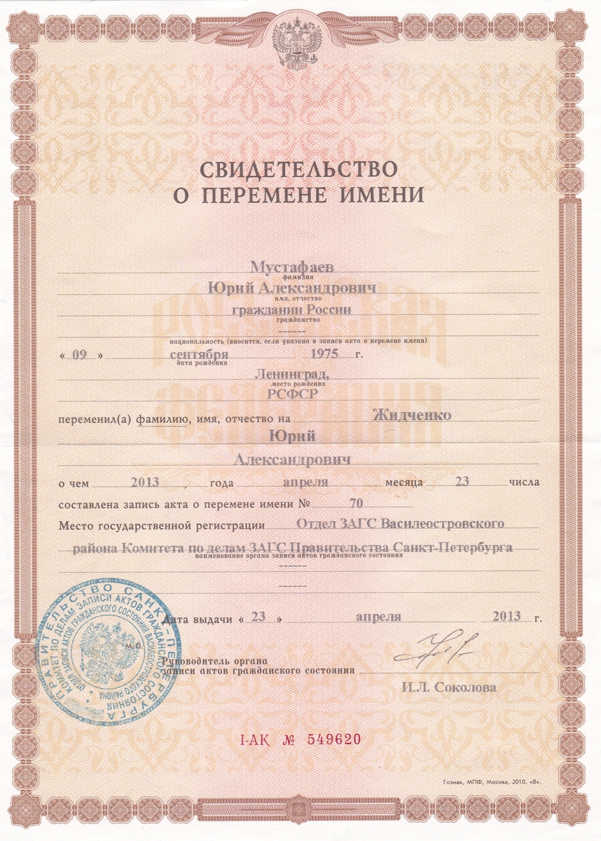 - Свидетельство о перемене имени